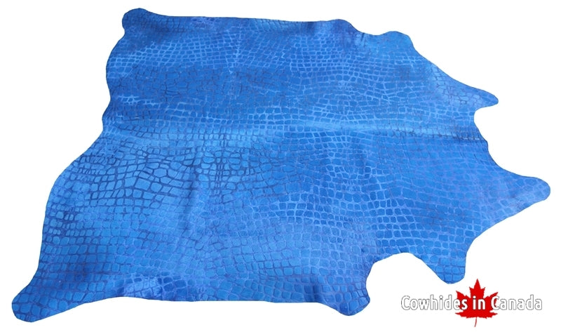 300662- Blue Textured Cowhide Rug DYED BLUE - Collection Quebecuir Premium
